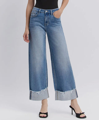 Lovervet comfort stretch high rise cuffed wide leg, 10” rise, 28” inseam.