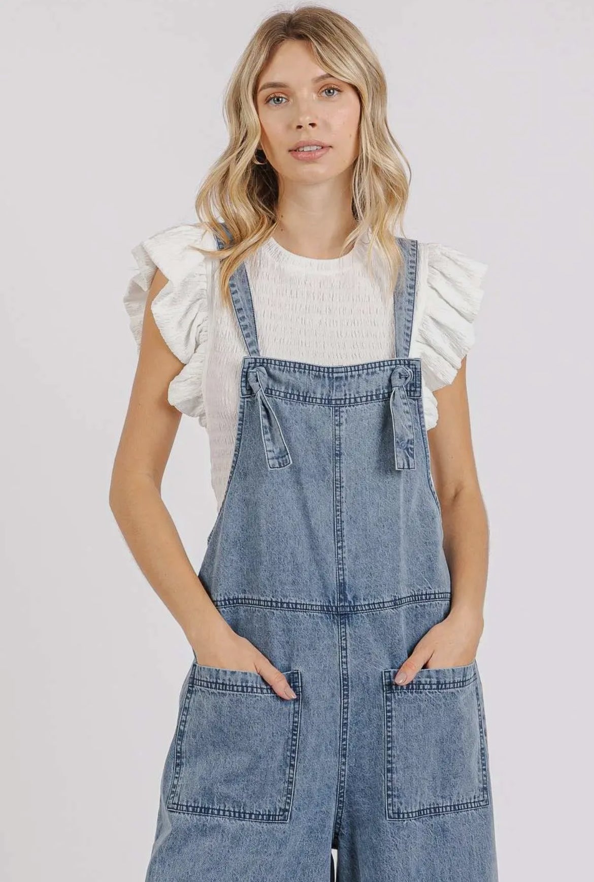Washed Denim Overalls