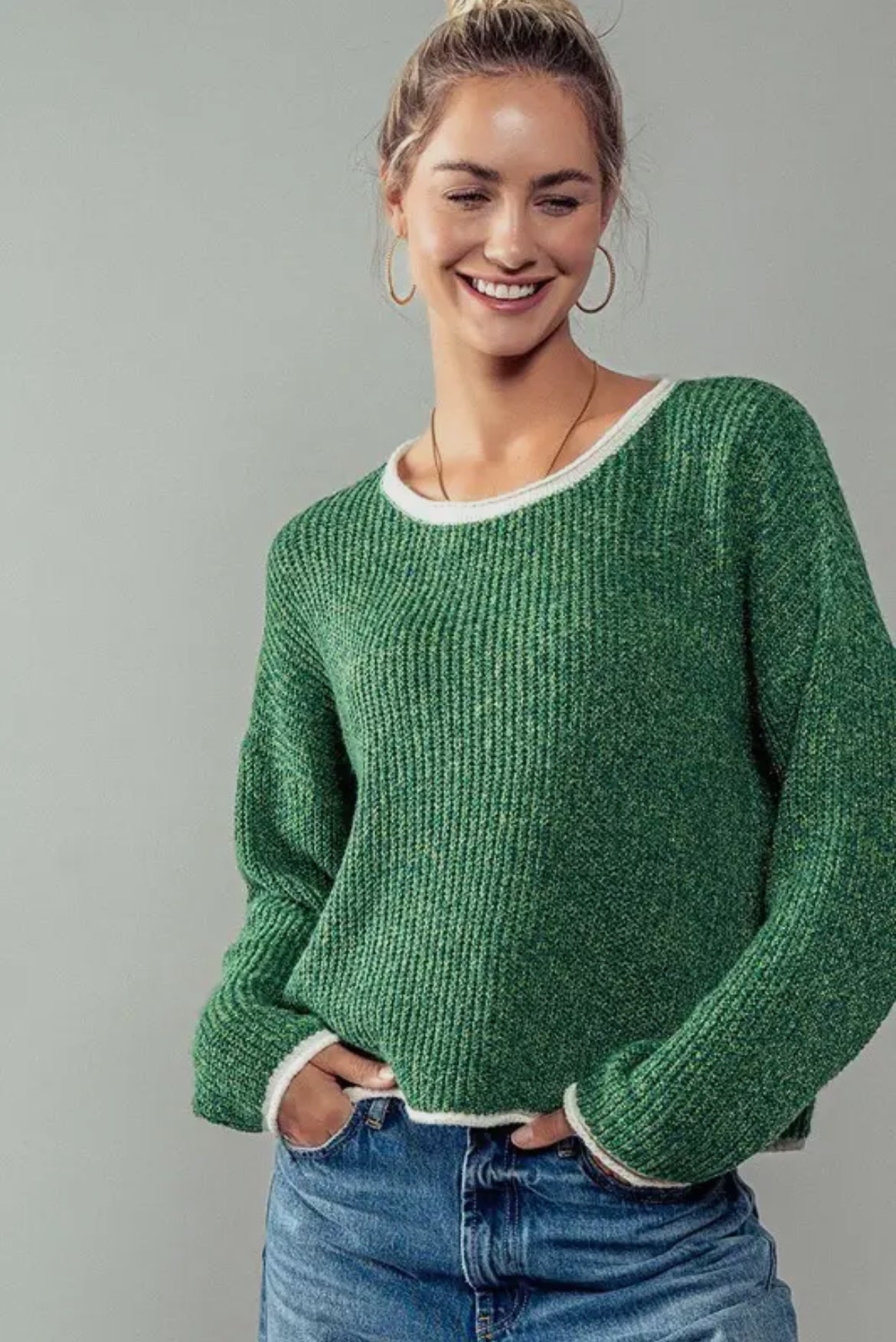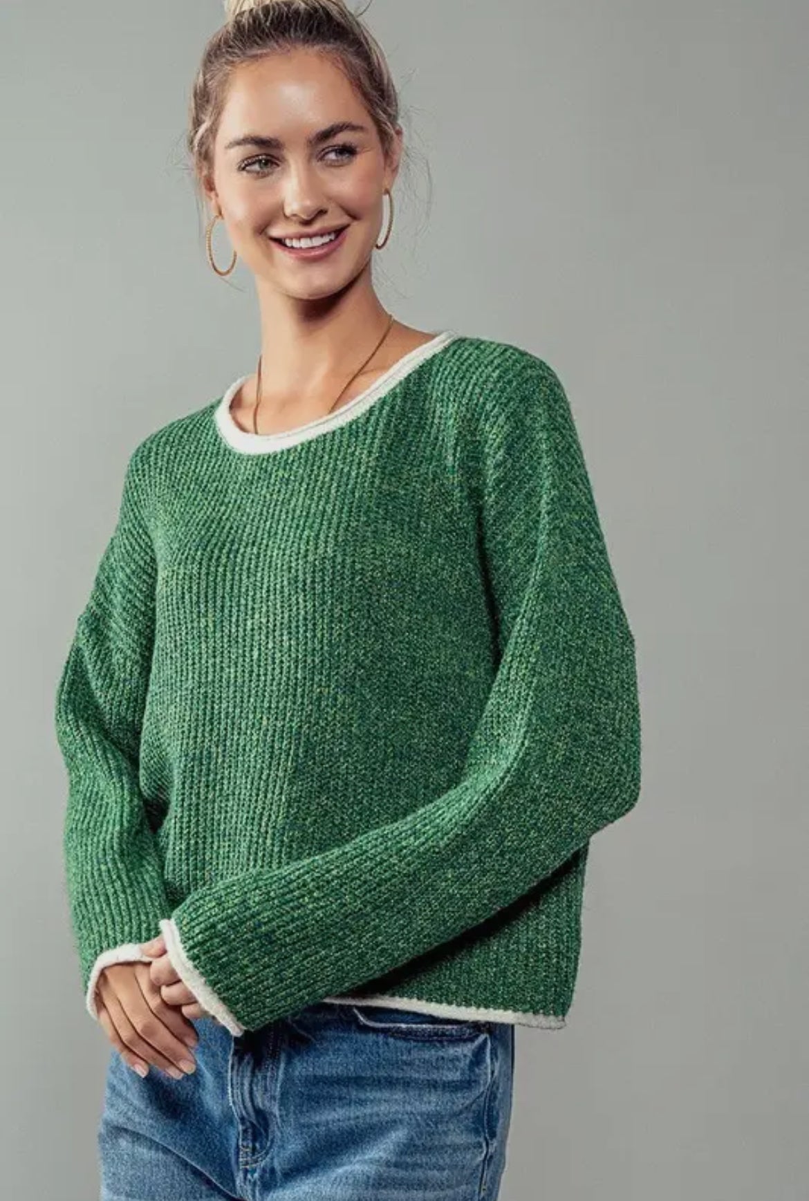 Forest Contrast Detail Sweater