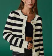 Black & Cream Stripe Cardigan