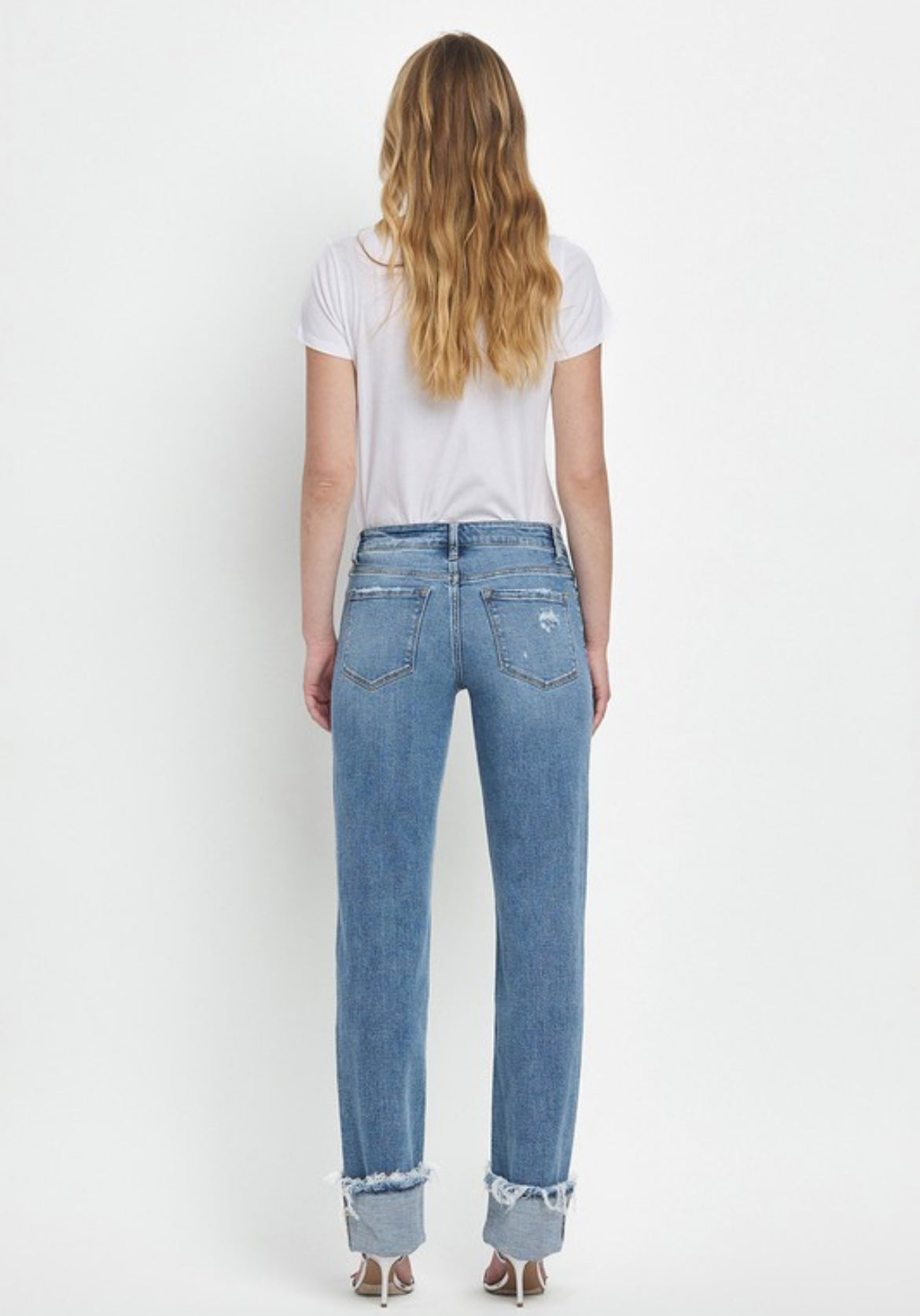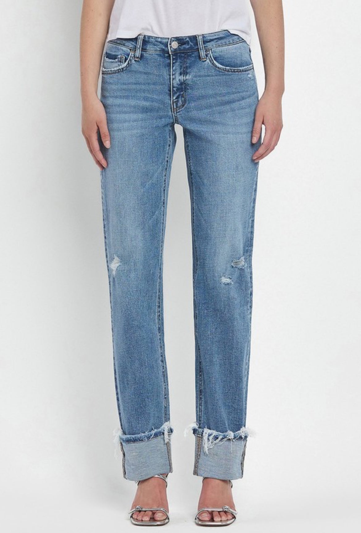 Lovervet comfort stretch mid rise cuffed slim straight, 9” rise, 32” inseam + 4” cuff