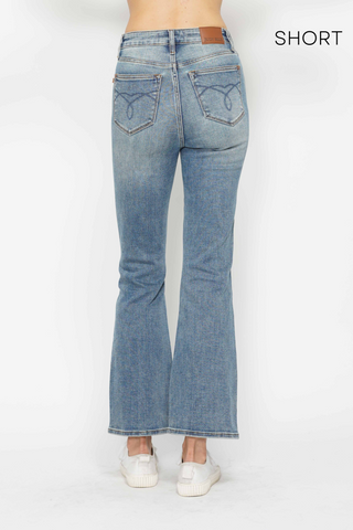 Judy blue tummy control, comfort stretch high waist bootcut denim, 11” rise, 30” inseam.