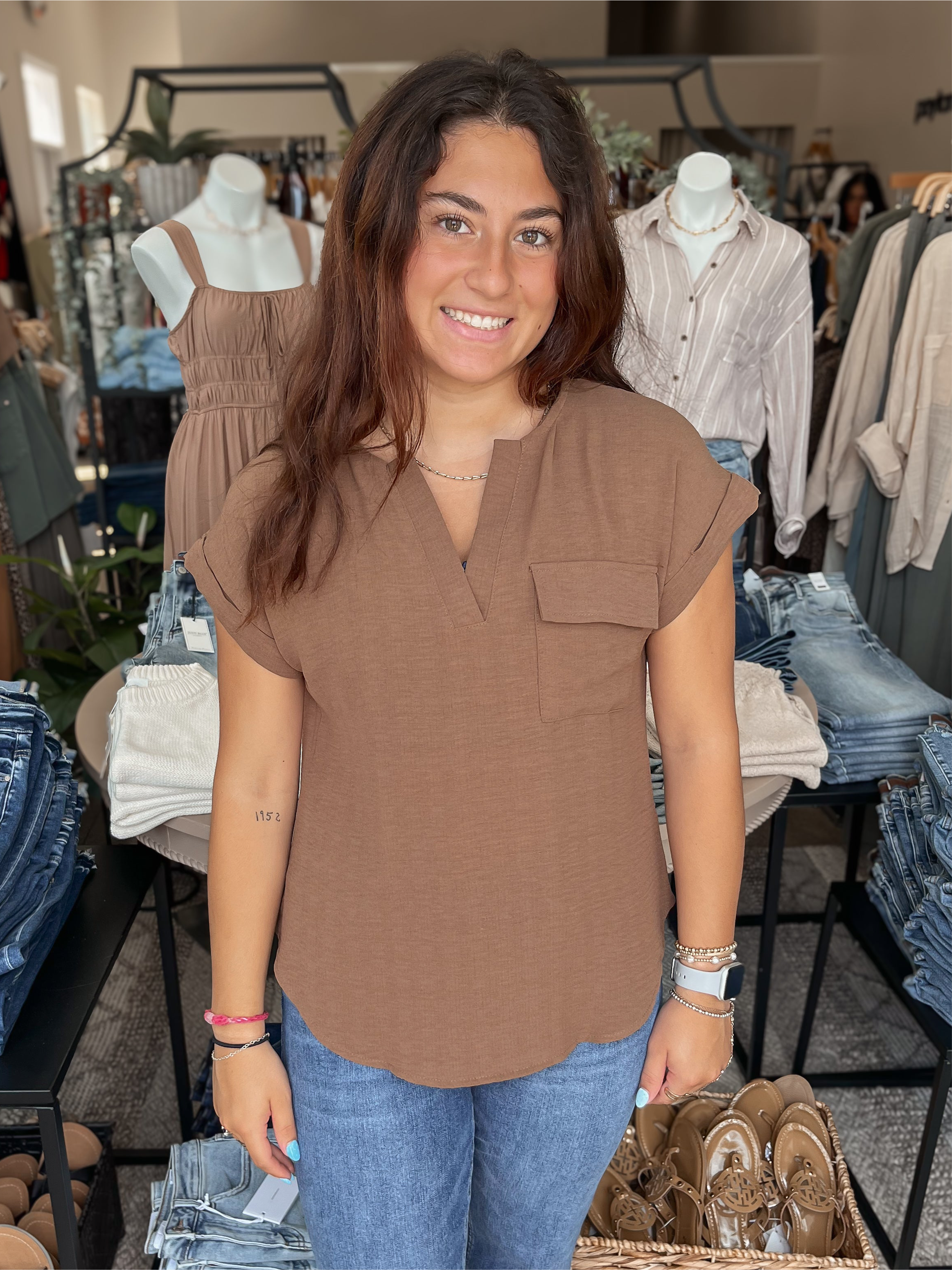 Mocha Split Neck Blouse